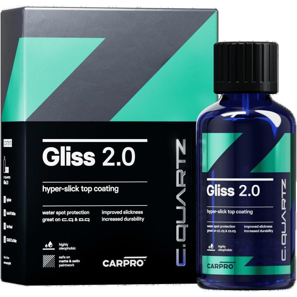 CARPRO Gliss 2.0 - Ceramic Coating for Cars - Hydrophobic Topcoat – Extreme Slickness & Water Spot Protection w/Microfiber Applicators - Repels Oil, Dirt & Grime Making Car Easy to Clean - 30ml Kit(50mL)