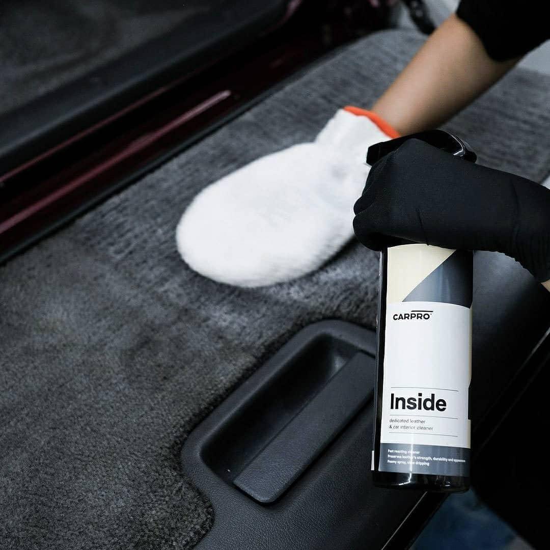 Dilution Ratio: Can be used straight for heavy cleaning or dilute 1:1 for typical soiling or lighter cleaning. Cleaning synthetic suede: *Dilute CARPRO Inside to a dilution ratio of 1:10.