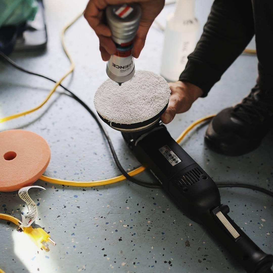 Size: 5 1/4″ diameter. Thickness: 5/16″. Pore size: 80ppi. Foam hardness: 3kpa. Material: Velvet polishing surface with hook and loop backing.